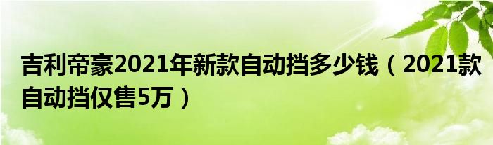 1、吉利帝豪是吉利母品牌旗下的经典家用车,于2014年7月正式上市,出色的驾驶体验深受用户喜爱。那么吉利帝豪2021年新款自动挡多少钱?我们来看看详细的解释。2021款自动挡仅售5万