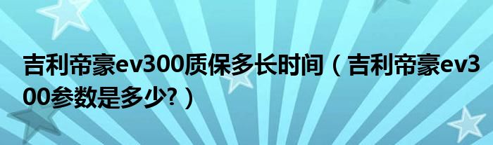 大家好,小美来为大家解答以上问题。吉利帝豪ev300质保多长时间,吉利帝豪ev300参数是多少?很多人还不知道,现在让我们一起来看看吧!