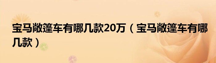 大家好,小美来为大家解答以上问题。宝马敞篷车有哪几款20万,宝马敞篷车有哪几款很多人还不知道,现在让我们一起来看看吧!