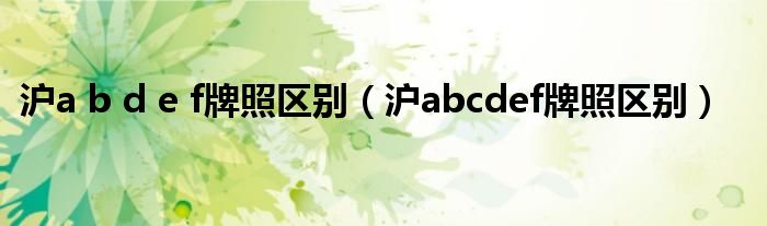 大家好,小美来为大家解答以上问题。沪a b d e f牌照区别,沪abcdef牌照区别很多人还不知道,现在让我们一起来看看吧!