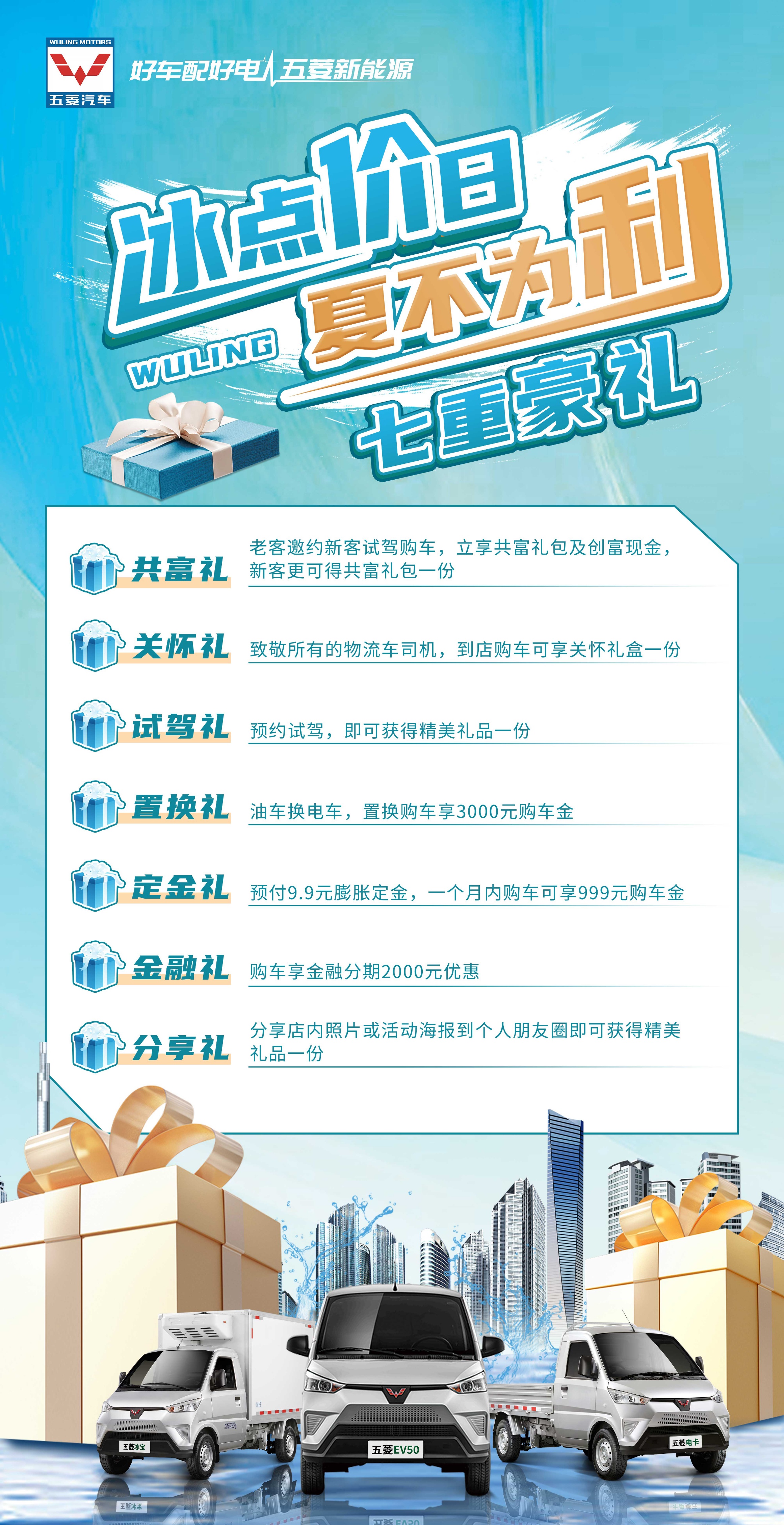 火热六月天,创富正当时。五菱新能源推出“冰点价日 夏不为利”活动,即日起至7月15日,凡购买五菱新能源系列物流车即享神秘试驾礼、3000元置换购车金、定金9.9元膨胀999元、金融分期优惠、老带新共富大礼包、平民英雄暖心关怀礼、活动分享惊喜礼包等购车优惠,多重钜惠豪礼带你快速解锁五菱新能源绿色城配新生活,给你绿色、高端、快速、安全、实惠的物流运输新体验。