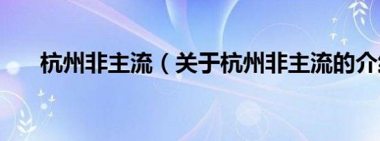 杭州非主流(关于杭州非主流的介绍)