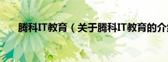 大家好,小乐来为大家解答以上的问题。腾科IT教育,关于腾科IT教育的介绍很多人还不知道,现在让我们一起来看看吧!1、腾科IT教育集团 是