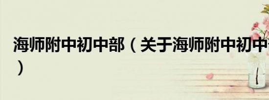 大家好,小乐来为大家解答以上的问题。海师附中初中部,关于海师附中初中部的介绍很多人还不知道,现在让我们一起来看看吧!1、海南师范大