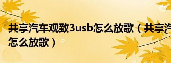大家好,小饭为大家解答以上问题。共享汽车观致3usb怎么放歌,
