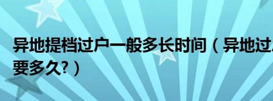 异地提档过户一般多长时间(异地过户提档需要多久?)