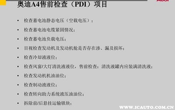 “PDI”的全称是“交货前检验”,在中文翻译中是“交货前检验”的意思。一般来说,为了保证客户新车具有完整的安全性和性能,4S店会在车辆交付前进行免费的PDI测试。