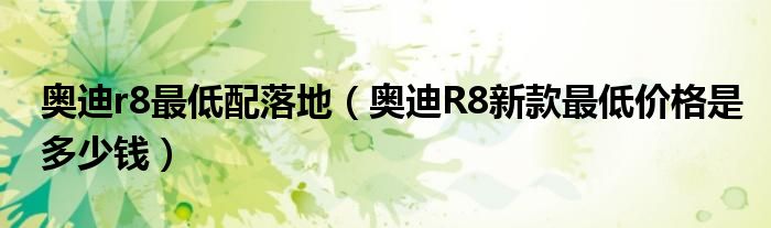 大家好,熊熊来为大家解答以上问题。奥迪r8最低配落地,奥迪R8新款最低价格是多少钱目前这个还是有很多人还不知道,现在让我们一起来看看吧!