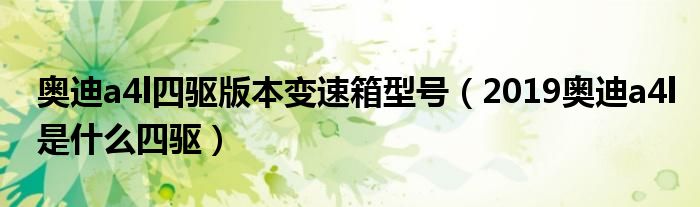大家好,小饭为大家解答以上问题。奥迪a4l四驱版本变速箱型号,2019奥迪a4l是什么四驱是什么很多人还不知道,让我们现在一起来瞧瞧吧~!