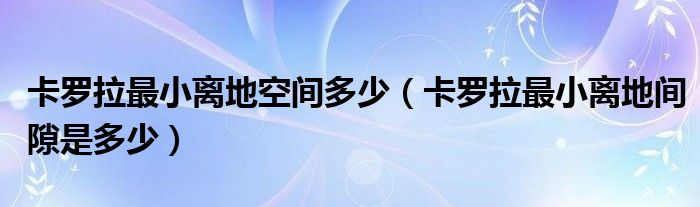 大家好,小饭为大家解答以上问题。卡罗拉最小离地空间多少,卡罗拉最小离地间隙是多少是什么很多人还不知道,让我们现在一起来瞧瞧吧~!