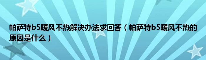 大家好,小饭为大家解答以上问题。帕萨特b5暖风不热解决办法求回答,帕萨特b5暖风不热的原因是什么是什么很多人还不知道,让我们现在一起来瞧瞧吧~!