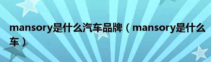 导读大家好,小饭为大家解答以上问题。mansory是什么汽车品牌,mansory是什么车是什么很多人还不知道,让我们现在一起来瞧瞧吧~!解答:1、Man