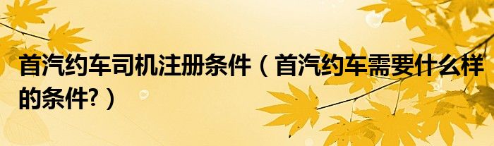 导读大家好,小美来为大家解答以上问题。首汽约车司机注册条件,首汽约车需要什么样的条件?很多人还不知道,现在让我们一起来看看吧!1、首车要