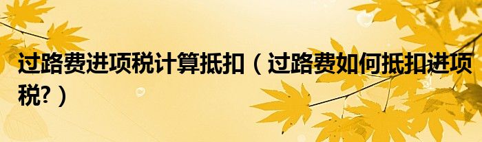 大家好,小美来为大家解答以上问题。过路费进项税计算抵扣,过路费如何抵扣进项税?很多人还不知道,现在让我们一起来看看吧!