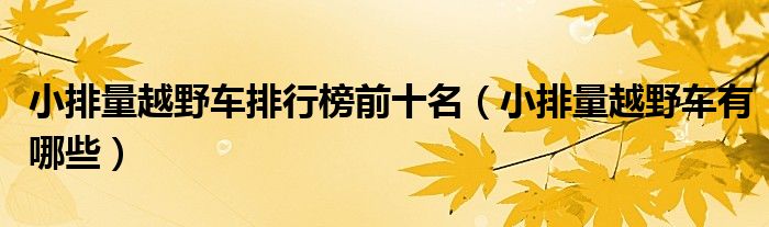 今日最新:大家好,小太来为大家解答以上的问题小排量越野车排行榜前十名,小排量越野车有哪些这个很多人还不知道,现在让我们一起来看看吧!