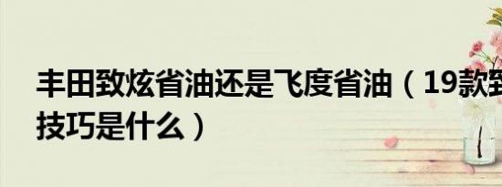 丰田致炫省油还是飞度省油(19款致炫省油技巧是什么)