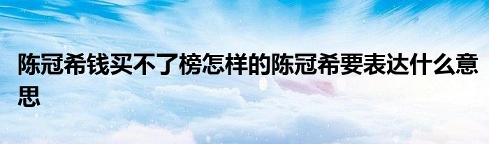 大家好.我是车市网的小编小洋为大家解决以上陈冠希钱买不了榜怎样的陈冠希要表达什么意思的问题.
