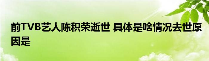 大家好.我是车市网的小编小洋为大家解决以上前TVB艺人陈积荣逝世 具体是啥情况去世原因是的问题.