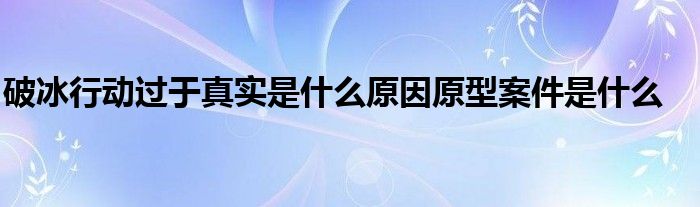 大家好.我是车市网的小编小洋为大家解决以上破冰行动过于真实是什么原因原型案件是什么的问题.