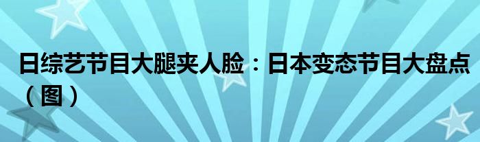 大家好.我是车市网的小编楠楠小洋,现在为大家解决以上日综艺节目大腿夹人脸:日本变态节目大盘点(图)的问题.