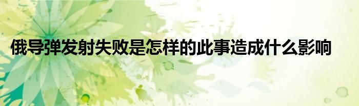 1、俄导弹发射失败是怎么回事?此事造成什么影响?有无人员伤亡情况?随小编一起来看看吧。