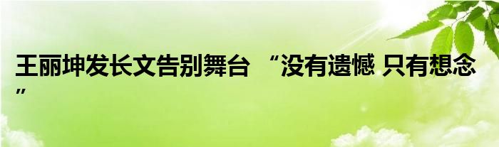 大家好.我是车市网的小编楠楠小洋,现在为大家解决以上王丽坤发长文告别舞台 “没有遗憾 只有想念”的问题.