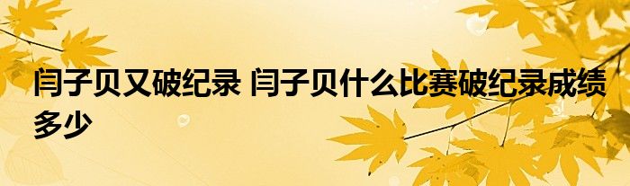 大家好.我是车市网的小编楠楠小洋,现在为大家解决以上闫子贝又破纪录 闫子贝什么比赛破纪录成绩多少的问题.