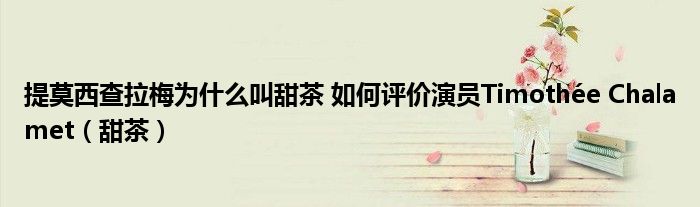 13、提莫西查拉梅从名字上我们就可以看出他为何被粉丝上成为甜茶了。因为茶的英文为tea,而提莫西的谐音很像是tea的发音,再加上小哥哥的长相上属于青春甜美的美少年,所以被粉丝们称为甜茶了。也有传闻说是Chalamet前三个字幕拼音是茶。