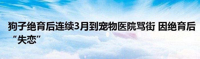 导读 大家好 我是车市网的小编楠楠小洋,现在为大家解决以上狗子绝育后连续3月到宠物医院骂街 因绝育后“失恋”的问题 1、据报道,近日,一位宠