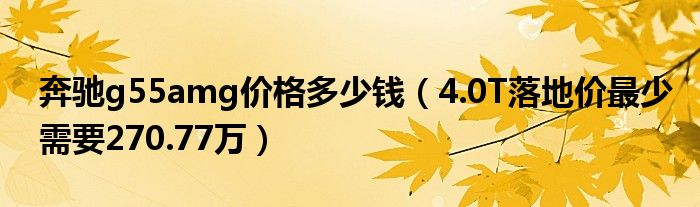 大家好,小太阳来为大家讲解下奔驰g55amg价格多少钱,4.0T落地价最少需要270.77万很多人还不知道,现在让我们一起来看看吧!