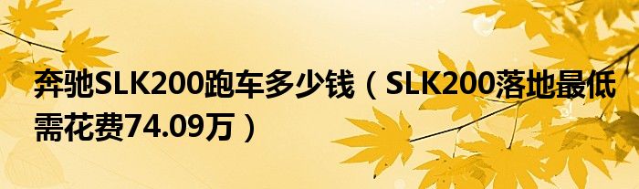 大家好,小太阳来为大家讲解下奔驰SLK200跑车多少钱,SLK200落地最低需花费74.09万很多人还不知道,现在让我们一起来看看吧!