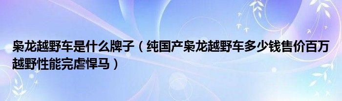大家好,小太阳来为大家讲解下枭龙越野车是什么牌子,纯国产枭龙越野车多少钱售价百万越野性能完虐悍马很多人还不知道,现在让我们一起来看看吧!