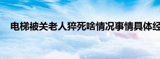 大家好 我是车市网的小编楠楠小洋,现在为大家解决以上电梯被关老人猝死啥情况事情具体经过是的问题 1、电梯被关老人猝死2、近日,广东阳春