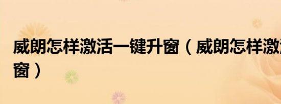 威朗怎样激活一键升窗(威朗怎样激活一键升窗)