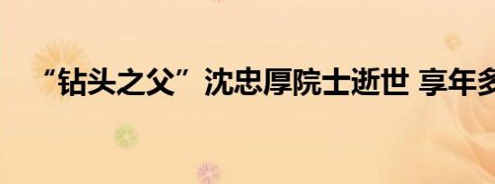 “钻头之父”沈忠厚院士逝世 享年多少岁