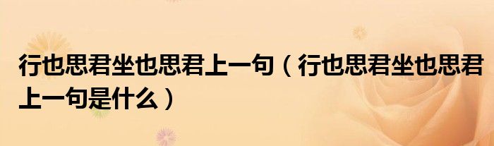 导读大家好,郎郎来为大家解答以上问题。行也思君坐也思君上一句,行也思君坐也思君上一句是什么很多人还不知道,现在让我们一起来看看吧!1、