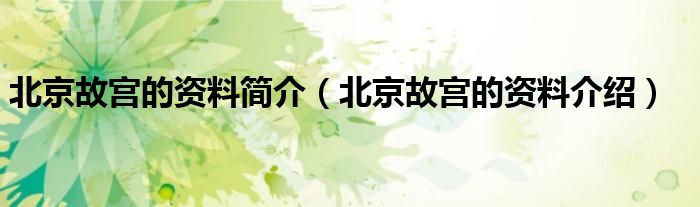 大家好,郎郎来为大家解答以上问题。北京故宫的资料简介,北京故宫的资料介绍很多人还不知道,现在让我们一起来看看吧!