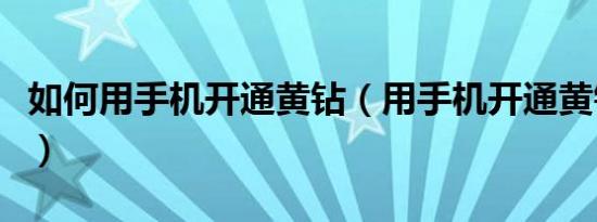 如何用手机开通黄钻(用手机开通黄钻的方法)
