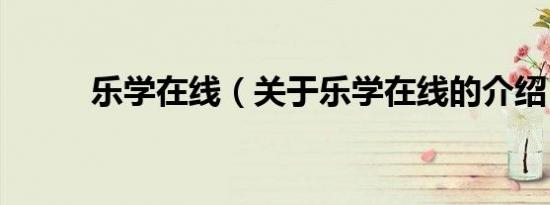 大家好,小乐来为大家解答以上的问题。乐学在线,关于乐学在线的介绍很多人还不知道,现在让我们一起来看看吧!1、乐学在线教育科技(北京